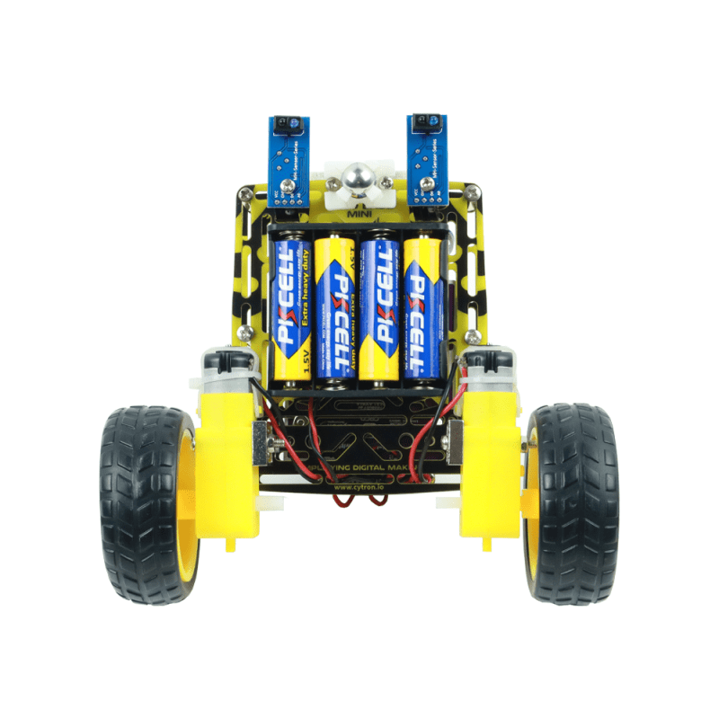 The kit comes in loose parts, so you will need to assemble it, but there is no soldering needed 🙂 What’s so special about this mobile robot kit is it has an infrared sensor (two) where you can program it for line detection and perform line following. And we have prepared the steps for you to assemble it and a sample sketch based on Arduino for your robot to follow the line.